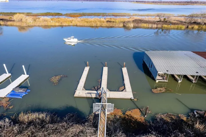 Waterfront Lot with Private Dock and a Million Dollar View! Build your dream home or park you RV on the lot and your boats in the Double U-Dock! Each slip is 45’L x 15’W. Located in the Heart of the Delta on Piper Slough overlooking Franks Tract. Close to fast water! Property has a private well, sewer, and even has it’s own flag pole at the top of the levee! Prime location! This property is located at the end of a private road. Walk to the Sugar Barge Restaurant, enjoy the live music, great food, atmosphere and great views! Water parcel is included. Breathtaking sunrises, sunsets and year-round bird watching! Nearby boat launch and boat storage at Sugar Barge Resort. Seller has Building Plans with approved variance.