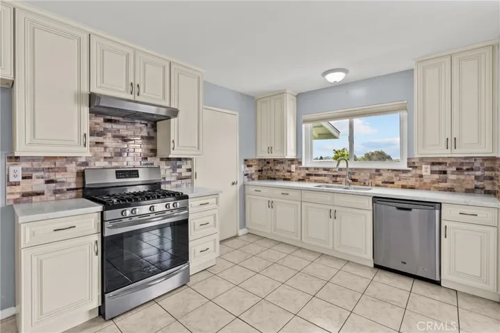 One of the best-looking homes in the neighborhood! This charming 3 bedroom, 2 bath home offers approximately 1,188 sq ft on a spacious 9,036 sq ft lot with excellent curb appeal and convenient freeway access. Major improvements completed around 2017 include a newer roof, energy-efficient windows and screens, updated heating and AC system, kitchen upgrades, and sewer line service. Inside features wood laminate flooring throughout with tile in the kitchen and bathrooms. The inviting kitchen showcases custom cabinetry, stone countertops, decorative backsplash, and newer appliances. The large backyard offers lush lawn, fruit-bearing trees, and a concrete patio slab—perfect for relaxing or entertaining. With a brick ribbon driveway, front security screen door, and pride of ownership throughout, this home truly stands out.