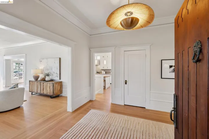 Beautifully positioned off the street, 15 Mesa Ave is a quiet retreat just moments from the heart of Piedmont. This distinctive home enjoys a uniquely peaceful setting just blocks from schools, parks, and Mulberry’s Market. Inside the residence captures the charm of a classic California Craftsman with a touch of relaxed European elegance. Beautifully crafted front door opens to a gracious foyer & dramatic living room w/ soaring ceilings and striking custom windows. The living room flows seamlessly to the dining room with original built-ins and access to a sun-drenched deck, perfect for indoor-outdoor living. Spacious kitchen features a central island, 6-burner range, abundant storage, and generous space for gathering. The main level also includes a light-filled primary suite with a large walk-in closet and updated bath, along with a second bedroom and full bath. Lower level offers a warm family room with rich wood paneling, custom shelving, and a second fireplace, plus a versatile bonus space ideal for an office or guest room. An additional bedroom and full bath featuring a FuroHealth® hot soaking tub and cold plunge with adjoining shower. Sunny deck off dining room includes spiral stairs to garden & detached garage, complementing this special home.