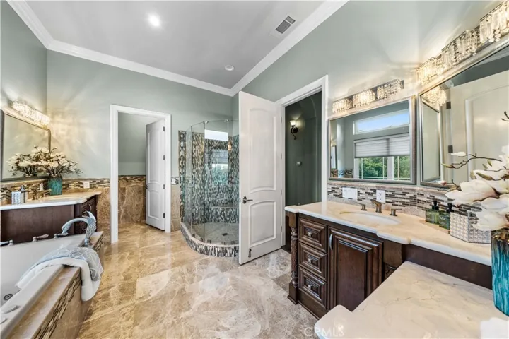 Perched behind a private gate at the end of a long-paved driveway, this custom Mediterranean estate offers exceptional privacy and scale on approximately 3.83 acres across three contiguous parcels in prestigious La Habra Heights. Built in 2014, the 4,933-square-foot residence features a dramatic grand foyer with marble floors, inlaid medallion, stylish staircase, and soaring 20-foot ceilings. Expansive windows fill the home with natural light, highlighting elegant formal living and dining spaces, a flexible office or study, and an open great room that flows seamlessly into the chef’s kitchen. Thoughtfully designed for comfortable living and effortless entertaining, the kitchen offers custom cabinetry, an oversized island, walk-in pantry, professional-grade stainless appliances, and French doors leading to the patio. The primary suite provides a private retreat with balcony, fireplace, spa-inspired bath, and an expansive walk-in closet. Three additional bedroom suites each feature private baths. A separate lower-level guest quarters with exterior access is ideal for extended stays or multigenerational living. The inclusion of two adjacent parcels creates a rare opportunity for a private compound, future development, or long-term land investment. Enjoy sweeping canyon and city-light views, a three-car garage, and the tranquility of La Habra Heights — all within convenient reach of both Orange and Los Angeles Counties. A rare offering of privacy, land, and potential.