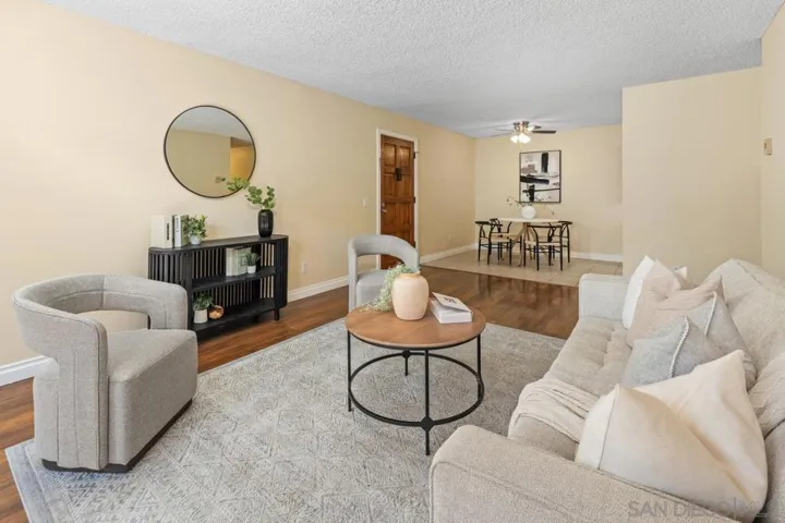 Move-in ready Carlsbad coastal condo in the highly desirable community of The Grove! This upgraded 2BR/2BA home offers 1,029 sq. ft. of light and bright living space with premium wood and tile flooring throughout. Features a spacious primary suite with updated bath fixtures and a versatile second bedroom ideal for guests or a home office. The refreshed kitchen includes updated appliances, new faucet, disposal, and enhanced lighting, opening to the dining area with ceiling fan. In-unit washer/dryer and private balcony. Enjoy resort-style amenities including pool, spa, and tennis courts. Prime location near shopping, dining, Carlsbad Village, beaches, and top-rated Carlsbad schools.