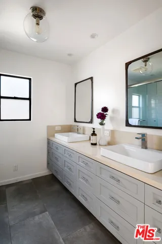 Welcome to this spacious, beautifully updated single level home in the centrally located Loyola Village neighborhood of Westchester. The main house features an open concept layout with 3 bedrooms, 2 bathrooms, an abundance of natural light, original wood floors, decorative fireplace, designer light fixtures, beautifully updated chef’s kitchen with stone floors, farmhouse sink, stainless appliances, wine fridge, and dining room with concertina doors opening to the patio and expansive, private outdoor space. The primary bedroom has the en-suite bathroom, two additional bedrooms and the 2nd bathroom, both baths with stone floors and beautiful dual vanity areas. The finished garage/flex space is being used as a bonus area with natural light, a great area for entertaining or just relaxing, a split system HVAC and a separate laundry room and beautiful 3/4 bathroom. Additionally there is a cozy stand-alone bungalow serving as a private office. There is a tankless water heater, synthetic grass and outdoor shower. Don’t miss this lovely property with easy access to all this wonderful location has to offer including top rated schools, Beach cities, Silicone Beach, Culver City, restaurants, shopping, LAX and so much more.