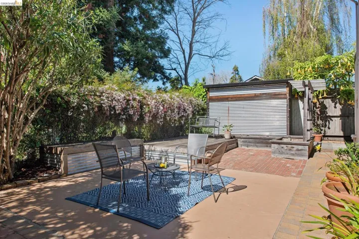 Extraordinary offering. This special property is ideal for multi-generational living, shared housing, or house hacking. Impressive single-family home at the front and a charming income-generating duplex at the back. A lovely courtyard with gardens and a small stage for live music or events separates the two buildings. The main house offers convenient living with an elevator connecting all three floors, newer windows and roof, and immaculate artistic interiors. On the lower level, there’s a full bedroom and bath—perfect for a private suite or home office. The second floor includes two large bedrooms, an office, and a bathroom. On the top level, you’ll find a bright living room, dining area, newly renovated chef’s kitchen with a Bertazzoni range, and another office. The rooftop deck provides panoramic views of the hills and Bay Bridge, privacy, and a plumbed gas grill for year-round enjoyment. The duplex has upper and lower units, each with two bedrooms, one bath, updated kitchens, new electrical systems, and windows. W/D in each unit, all appliances included. Both flats have functional layouts with charming details. Conveniently walk to nearby cafes, parks, and shops, and abundant off-street parking. Income from the duplex can help make this exceptional home your own!