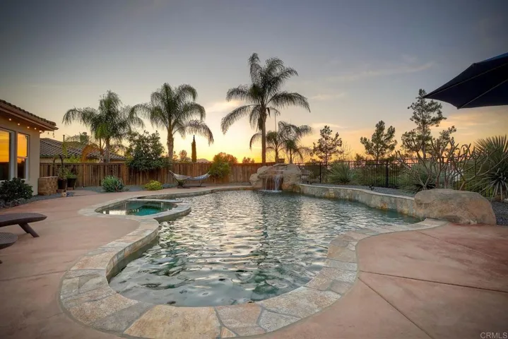 Welcome to luxury in the highly desirable gated community of Woods Valley. This beautifully designed 4 bedroom with on suites and Office or 5th bedroom single-story home offers the perfect blend of privacy, comfort, and resort-style outdoor living. One bedroom has a newer well designed ADA Compliant bathroom. Wide Hallways and Doorway. Set on an elevated lot, the home welcomes you through a charming open-air courtyard entry that creates a warm and inviting first impression. Inside, the spacious floor plan offers generous living areas filled with natural light and seamless indoor-outdoor flow ideal for both everyday living and entertaining. The real showstopper is the backyard oasis with Views. Designed for relaxation and gatherings alike, the property features a stunning resort-style pool and spa, a cozy fire pit seating area, and multiple outdoor spaces perfect for enjoying Southern California evenings under the stars. Whether hosting friends or enjoying a quiet sunset, the setting feels like a private retreat. The expansive kitchen opens to the family room and breakfast area, creating the heart of the home for gatherings and everyday moments. Thoughtful design and comfortable living spaces make the layout both functional and welcoming. SOLAR PAID. Woods Valley community, residents enjoy a peaceful setting surrounded by rolling hills and close proximity to the Native Oaks Golf Club, offering a lifestyle of outdoor recreation, golf, and serene views. Come experience the relaxed elegance and lifestyle this exceptional property offers. Many upgrades!