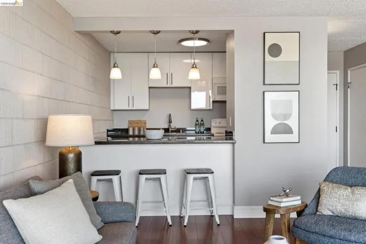 This location is ideal for those seeking to live near Piedmont Avenue, with its restaurants, gourmet grocery stores, coffee houses, boutiques, salons, a first-run movie theater and a famous ice cream parlor. The west facing floor to ceiling glass walls capture the magnificent views of San Francisco, the Golden Gate Bridge and Mount Tamalpais. Wood flooring flows throughout and the bathroom countertop features stunning green glass. The updated kitchen features a granite counter breakfast bar where friends can gather to chat as the host produces sumptuous meals. Outdoors, the balcony runs the full width of the condo and is a perfect place to relax at sunset while nature puts on a show for you and your guests. The transportation options abound near BART, AC Transit and close to Highway 580. It also includes a secured garage parking space as well as a storage unit. Guest parking is available near the entry. A large, light and airy laundry facility with a multitude of washers and dryers, makes doing the laundry pleasurable. Entertain large parties in the separate facility at the front of the building. Kelton Court is a quiet cul-de-sac, and unit 2D could be your primary home, or your pied-à-terre. Views: Downtown