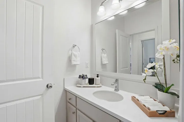 Welcome to this beautiful semi-detached condo located in the desirable community of River Islands in Lathrop. This home offers 3 bedrooms, 3 full bathrooms and 2-car garage. As you enter, you will be greeted by the soaring 9-foot ceilings on both levels and an open layout floorplan. It has large windows with lots of natural light, beautiful plantation shutters, tile flooring throughout the main floor and gorgeous laminate on the second floor, functional kitchen with granite counters and stainless appliances, laundry upstairs and a bedroom on the main level – perfect for your visiting older parents! Spend your evenings strolling the community, walks around the lakes, parks, baseball or soccer field. It has a low maintenance backyard perfect for get-togethers. Gas line available for BBQ, whole house fan, tankless water heater and garage is pre-wired for electric car charger. So much more, you have to see it. THIS WONT LAST LONG!