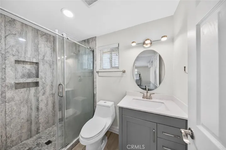 Gorgeous Remodeled Single Level Home with Permitted ADU in the Prestigious Los Coyotes Country Club Neighborhood! Located in one of Buena Park’s most desirable communities, this beautifully updated residence sits on an expansive 10,648 sq ft lot and offers a rare single story floor plan plus permitted ADU. The home welcomes you with a charming circular driveway lined with palm trees and roses, providing abundant parking along with an additional shaded canopy carport. The main house, newly remodeled in 2025, features 3 bedrooms, 2 bathrooms, and approximately 1,560 sq ft of living space. Inside, you’ll find a bright open concept layout with a spacious living room featuring a cozy fireplace, recessed lighting, and large windows that fill the home with natural light. The living area flows seamlessly into the formal dining space, creating the perfect setting for gatherings and entertaining. The gourmet kitchen showcases stylish white cabinetry with modern hardware, quartz countertops, a designer backsplash, stainless steel appliances, and a breakfast bar ideal for casual dining. The primary suite offers a spacious closet and a beautifully updated ensuite bathroom with a walk-in shower. Two additional bedrooms are generously sized, while the oversized hallway bathroom features dual sinks and a walk-in shower. A convenient indoor laundry room adds functionality. Additional upgrades include remodeled kitchen and bathrooms with touch-sensor mirrors, new laminate flooring, fresh interior paint, recessed lighting, updated roof, newer windows and doors, and EV charging capability. The backyard is an entertainer’s dream, featuring a covered patio with epoxy flooring, a deck with gazebo, brand new grass, a storage shed, and a variety of fruit trees. The completely flat yard provides plenty of space for outdoor dining and relaxation. The permitted ADU (approx. 573 sq ft) offers 1 bedroom, walk-in closet, ensuite bath, laundry closet, remodeled kitchen and bath, and split AC units in the bedroom and living room. Previously generating approximately $2,500/month in rental income, this versatile space presents a great opportunity for multigenerational living or additional rental income. Conveniently located near Los Coyotes Country Club, Clark Park, golf courses, award-winning schools, shopping, dining, bike trails, and with easy access to the 5 and 91 freeways. A rare opportunity in a highly sought-after neighborhood, don’t miss it!