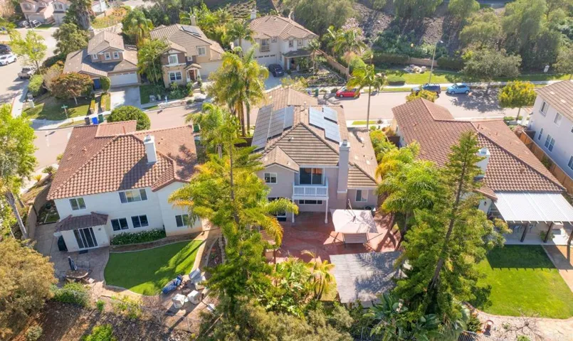This Calavera Hills showstopper checks all the boxes! Located on a quiet cul-de-sac with peaceful area views! OWNED SOLAR! Versatile floor plan with two bedrooms and two baths on the main level! Large loft, upstairs laundry room, living and dining rooms, and inviting family room. Central air conditioning, plantation shutters, gorgeous wood flooring, extensive crown moulding. Incredible island kitchen opens to the family room with fireplace. View deck off primary bedroom. Huge, private backyard with BBQ, gazebo area, and beautiful brick. CARLSBAD SCHOOLS! Community pool and spa. Close to Calavera Hills Community Center & Park, Lake Calavera, and miles of hiking trails.