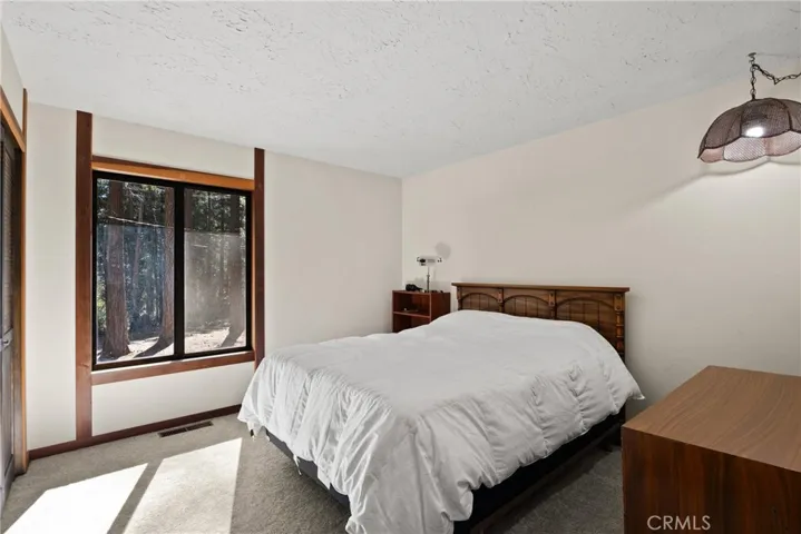 Nestled among the pines on a spacious .45-acre lot, this charming 2 bedroom, 2 bathroom home with an attached 2-car garage offers privacy, warmth, and a timeless cabin like feel. Inside, the inviting living area features beautiful tongue-and-groove ceilings with exposed beams, huge windows letting in tons of natural light, and a cozy wood burning stove with an inset stone hearth.