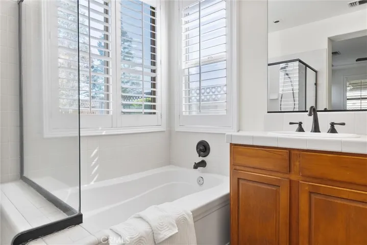 Located on the only cul-de-sac in the desirable gated Brighton Place community, this home offers one of the larger backyards in the neighborhood. Freshly painted throughout, the home feels bright, clean and move-in ready. The kitchen features granite countertops, new high-end oven and microwave (2026), newer dishwasher and bar-top seating ideal for everyday living and entertaining. The primary suite includes double sinks, a soaking tub and separate walk-in shower. The backyard is designed for entertaining with a custom masonry built-in BBQ, two patio areas, and an elevated terrace with mature fruit trees including pomegranate, lemon, apricot, peach, pear, grapes, plum and tangerine. The home has been consistently maintained and thoughtfully cared for. Brighton Place offers a resort-style community pool, park and community amenities near shopping and dining. Homes on the cul-de-sac in Brighton Place rarely come available.