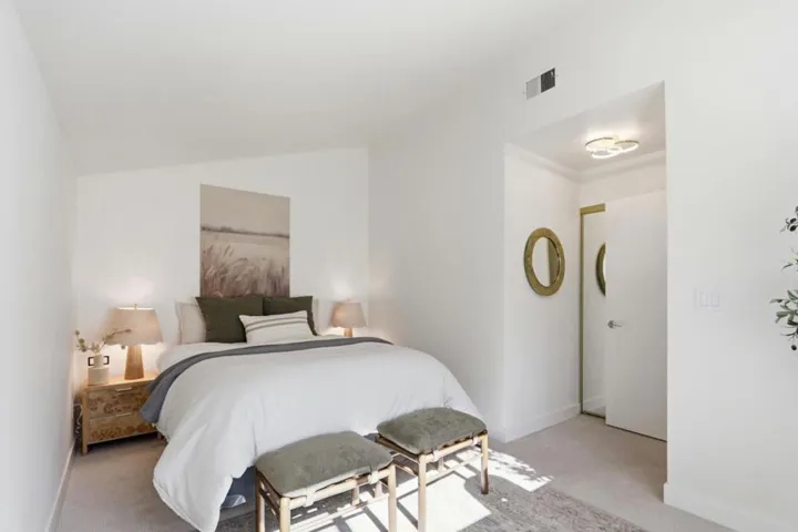Beautifully remodeled townhome in the desirable Santa Teresa community, offering modern style and effortless living. This 3BR/2.5BA home features 1,674 sq ft of refined space and a private patio with a tranquil water fountain –perfect for relaxing or entertaining. Updated in 2024, the sleek kitchen includes abundant cabinetry, pantry cabinet, coffee bar, quartz counters, and recessed lighting. The spacious living room opens seamlessly to the patio for indoor/outdoor enjoyment. Luxury plank flooring, resurfaced walls and ceilings, and upgraded lighting enhance the home throughout. The vaulted primary suite offers dual closets and a spa inspired bath with skylight, double sinks, quartz counters, bidet, and a walking shower. Additional upgrades include all new copper pipes and plumbing lines, newer furnace and AC, double paned windows, and dimmable recessed lighting. A rare opportunity to own a meticulously upgraded home in a prime location.