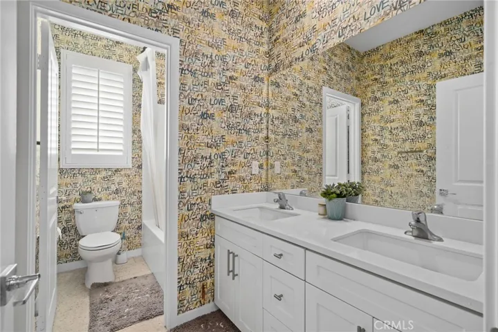The three secondary bedrooms share a well-appointed bathroom featuring double sinks, ensuring comfort for family and guests alike.