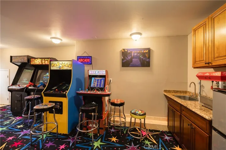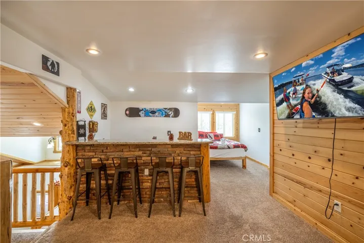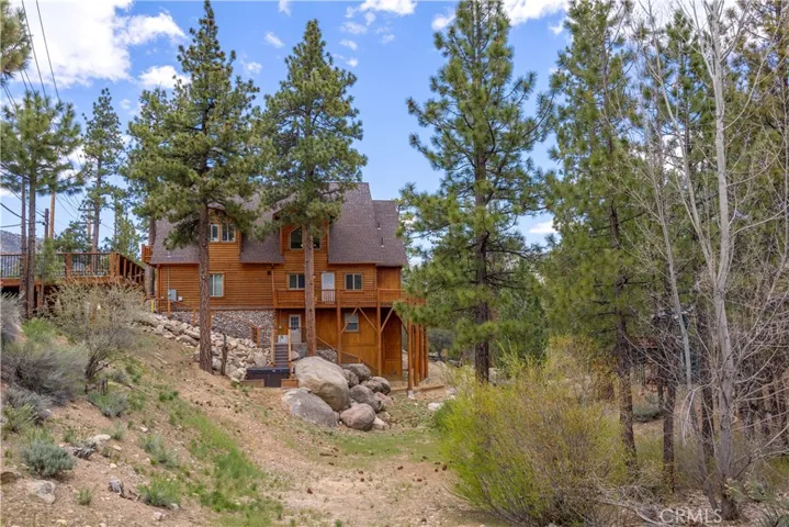 ***Amazing value, the neighboring lot is included in the sale for a future build or just additional yard space on a 10,000 sq ft lot for a combined lot total of 17,000+*** Escape to Five Bears Den, the ultimate mountain log cabin retreat in Big Bear! This impressive 6-bedroom cabin spans 3326 square feet, offering a perfect getaway for vacations, group gatherings, or corporate retreats. Spanning three levels, the cabin is designed for optimal privacy, with two bedrooms on each floor, ensuring a perfect balance between shared moments and personal space. The main family room features an amazing rock fireplace, a comfortable sofa, Smart TV, and access to the main bedroom, along with multiple adjacent balconies offering stunning 180-degree views. The upper level boasts a bar & wet bar, a large Smart TV and seating area, two bedrooms, and a full bathroom, each room thoughtfully curated to reflect the mountain setting. The main living level has plenty of room for large gatherings. The lower level is an oasis of fun, with a game room featuring full-sized arcade games, a wet bar and fridge, and even a popcorn machine. This floor also offers two bedrooms and a full bathroom. Outside, the spacious grounds provide ample space for walks and conversations, while the wraparound redwood decks offer the perfect setting for relaxation and family gatherings. Immerse yourself in the brand-new hot tub surrounded by boulders and enjoy the serene beauty of the surroundings.
