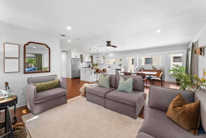 Located on the desirable north side of Kensington and just a short stroll to the restaurants, cafés, and shops along Adams Avenue, this beautifully remodeled Craftsman blends timeless character with thoughtful modern upgrades and a detached income-producing ADU. The main home showcases classic architectural charm paired with an inviting layout designed for both everyday living and entertaining. The spacious kitchen serves as the heart of the home, featuring quartz countertops, custom cabinetry, a large butcher block island, farm sink, and built out pantry. French doors throughout the home invite natural light and create a seamless connection to the outdoor living areas. The primary suite offers a peaceful retreat with a generous walk-in closet and a beautifully designed ensuite bathroom featuring elegant marble finishes, a custom vanity, and a spa-inspired walk-in shower. Set on a generous 7,168 sq ft lot, the backyard has been thoughtfully designed with turf and concrete to create clean, low-maintenance entertaining areas. A brand new jacuzzi and outdoor shower enhance the private, resort-style feel of the space. The detached ADU offers exceptional flexibility and is currently generating $2,650 per month in rental income, providing a valuable opportunity to offset the mortgage, host extended family, or create a private guest retreat. Major upgrades include a brand new roof and fully paid solar, new plumbing, new electrical, adding long-term efficiency and peace of mind while enhancing the home’s overall value and sustainability.