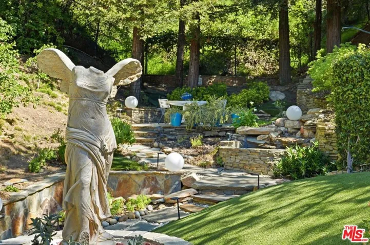 Secluded in the tranquil hills of Benedict Canyon, this private, gated retreat offers a rare sense of escape surrounded by towering trees and lush natural landscape. Tucked at the end of an approximately 200-foot private driveway, the home feels worlds away while still providing convenient access to the city. Inside, the residence is filled with warmth and natural light. Wide-plank flooring flows throughout the living spaces, while expansive picture windows and glass doors frame peaceful views of the surrounding greenery from nearly every room. The remodeled kitchen is thoughtfully designed with a striking center island, eye-catching backsplash, stainless-steel appliances, bright white cabinetry, and stylish modern finishes. Just off the kitchen, a charming greenhouse-style breakfast nook creates a light-filled setting for casual meals. The formal living room centers around a decorative fireplace and captures sweeping views of the hillside and landscaped grounds. The primary suite offers a calming sanctuary with a spacious walk-in closet and a well-appointed bathroom featuring a dual-sink vanity, separate shower, and jetted soaking tub. Additional bedrooms provide a cozy, elevated feel reminiscent of a treetop retreat. A separate remodeled guest house enhances the property with its own kitchenette, bathroom, and private patio-perfect for visitors, extended stays, or a flexible workspace. The outdoor setting is designed for both relaxation and entertaining, with grassy areas, rolling terrain, winding cobblestone pathways, water features, lounging decks, a built-in barbecue, and a sparkling pool and spa. Multiple outdoor seating and dining areas invite effortless al fresco living surrounded by nature. Situated within the highly desirable attendance boundaries for Warner Avenue Elementary School, this Benedict Canyon retreat blends privacy, charm, and a true connection to its natural surroundings.