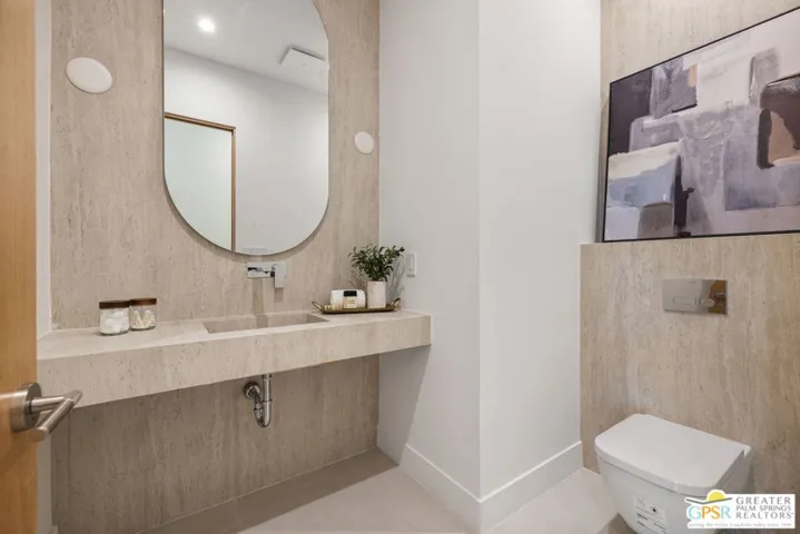 All new for 2026, this architecturally striking ultra-modern residence brings a bold contemporary presence to Palm Springs’ desirable Movie Colony East neighborhood. Designed with clean lines, soaring ceilings, and walls of glass that frame the dramatic west-facing views of Mt. San Jacinto, the home offers approximately 2,500 square feet of refined indoor/outdoor living with four bedrooms and three-and-a-half baths. Set on fee land with no HOA, the property blends privacy with a prime location just minutes from the restaurants, galleries, and energy of downtown Palm Springs. Inside, porcelain tile flooring, sleek cabinetry, and refined modern finishes reinforce the home’s minimalist design aesthetic. The open-concept living and dining areas flow seamlessly toward the outdoors, where multiple conversation spaces surround the newly built pool and spa, creating a true resort-style environment. At the heart of the home, the chef’s kitchen centers around an oversized island and features KitchenAid appliances, smart lighting, and modern cabinetry designed for both everyday living and entertaining. The thoughtful layout provides excellent bedroom separation for privacy. The Primary Suite opens directly to the pool terrace through dual sliding doors and features a walk-in closet and spa-inspired bath with soaking tub and walk-in shower. Junior Ensuite Two enjoys views and its own private bath, while Bedrooms Three and Four capture mountain views and share convenient access to a beautifully appointed bath. A powder room serves guests. Modern comforts continue throughout with upgrades including a Sonos sound system, Grohe plumbing fixtures, Lutron lighting controls, and wireless-enabled pool equipment. A rare opportunity to enjoy brand-new modern architecture in one of Palm Springs’ most sought-after neighborhoods where design, privacy, and mountain views converge.