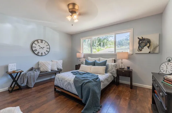 Welcome to this inviting Oak Hills Haven situated on over 1/3 acre of tree-lined seclusion! This tastefully updated & remodeled 4-bedroom, 2-bathroom home exudes charm & comfort throughout. Recent upgrades include new Pex plumbing with whole house filter; soft water system; new furnace & ductwork plus an air conditioner; a stunning primary bedroom remodel with a luxurious spa-like bathroom; and a new roof with solar. The kitchen is a culinary dream, featuring granite countertops, gas cooktop, double ovens, newer French door refrigerator/freezer, large pantry cupboard & a garden window looking out onto the expansive back yard. The flexible floor plan boasts both a family room & dining room and there is also a large, separate step-down living room featuring a modern stone fireplace with hand carved wood mantel. 3 sets of sliding French doors open up to the spacious back patio, artificial-turf playground, hot-tub and garden. When the world is fraught with stress and uncertainty it’s a joy to be able to come home to peace & tranquility, birds singing in trees, sun shining through windows and a steaming hot-tub waiting to help you unwind at the end of the day. This home is a private haven with the convenience of being just minutes to shopping, schools, major highways & the beach.