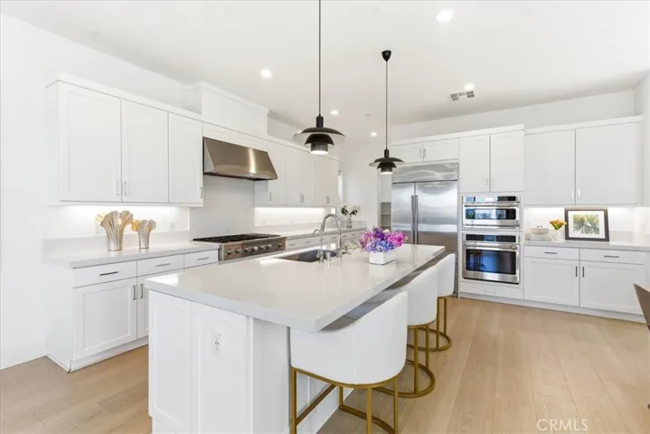 Rarely available in Irvine’s Great Park, this detached corner-lot home showcases Lennar’s coveted Next Gen® “Home Within a Home” design, featuring a private-entry first-floor suite, rare three-sided open exposure, abundant natural light, elevated upper-level outlooks, and the highly desirable advantage of a full driveway. A standout feature of the property is the thoughtfully designed first-floor Next Gen suite, complete with its own entrance, bedroom, bathroom, living area, kitchenette, laundry, and outdoor space. Ideal for multi-generational living, extended guests, an independent family member, or a truly separate office or studio, it offers a level of flexibility rarely found in Irvine. The main residence is thoughtfully designed with 10-foot ceilings, an open-concept layout, and well-integrated living, dining, and kitchen spaces that feel both refined and functional. This floor includes a versatile secondary bedroom. Designed for ultimate privacy, every bedroom in this residence features its own dedicated bathroom, ensuring comfort for every family member. The upper levels are a standout, with the top floor enjoying beautiful city-light and mountain views that add a rare sense of openness and visual appeal. You will find your peaceful retreat in the spacious loft, the luxe owner’s suite and another guest bedroom on the third floor. Thoughtful upgrades and tasteful design touches throughout further elevate the home’s comfort, style, and overall presentation. Additional highlights include solar, EV charging, water filtration, and the sought-after combination of a full driveway and 2-car garage. Ideally located in the Luna Park and just minutes from Irvine Spectrum, the Canopy, and major commuter routes, this is a rare opportunity to own one of Great Park’s most compelling and versatile floor plans.