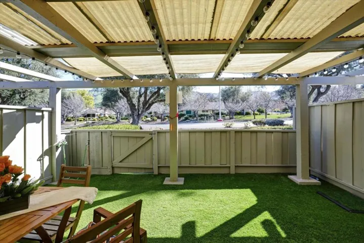 One level condo with no one above or below and easy access from Street. This 2 bedroom 2 bath has been remodeled and everything inside says easy living. This unit had an interior washer and dryer. remodeled kitchen, bathrooms and laminate floors through out. Location provides easy access to clubhouse, pickleball courts and Cribari Center. It also has a back sunny patio with artificial grass and storage. If that was not enough it has a huge storage area in the attic.