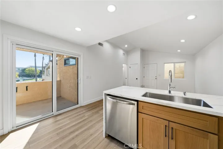 Welcome to this beautifully remodeled 1-bedroom, 1-bath condo in the highly desirable Fountain Crest Community, a rare opportunity featuring no neighbors below, offering enhanced privacy and quiet living. This thoughtfully upgraded home showcases modern finishes throughout, including durable SPC laminate flooring and a fully remodeled kitchen designed for both style and function. The kitchen features soft-close oak shaker cabinetry, Calacatta Gold quartz countertops, and a stunning waterfall peninsula that is perfect for cooking, casual dining, or entertaining. Brand-new stainless steel appliances complete the space with a sleek, contemporary touch. The bathroom has been elegantly redesigned with a floor-to-ceiling tiled shower, a full-length built-in shower ledge for convenient storage, and a quartz-topped vanity. The hallway closet features custom built-in cabinetry, maximizing storage while maintaining a clean and organized aesthetic. Additional highlights include in-home washer and dryer hookups, central air conditioning, and an oversized single-car garage conveniently located nearby. Residents of Fountain Crest enjoy resort-style HOA amenities, including a pool, spa, and outdoor cooking area, perfect for relaxing or gathering with friends and neighbors. Ideally located near top-rated schools, major freeways, shopping, and the expansive green spaces of Mile Square Regional Park, and just a short drive to the beautiful beaches of Huntington Beach, this home offers the perfect blend of comfort, style, and convenience.
