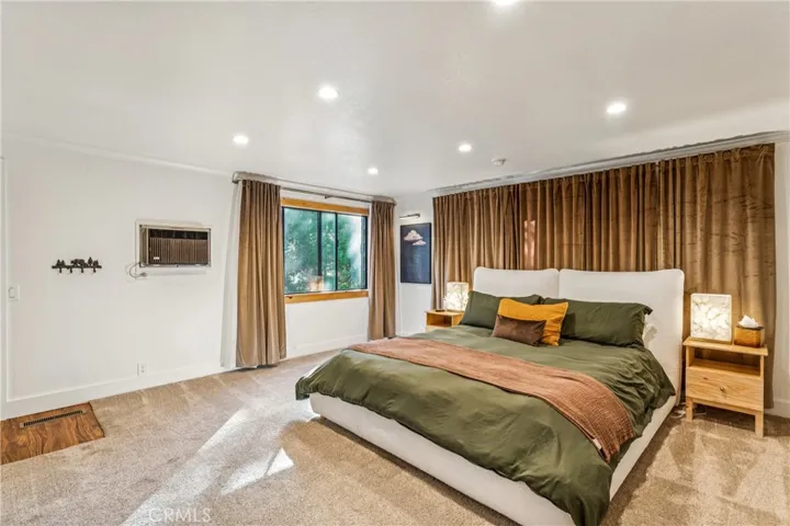 Premier 1st Tier Golf Course Mountain Home with Lake Rights!! Live the ultimate mountain lifestyle! This spectacular updated home is just a short walk to Grass Valley Lake, a quick golf cart ride to Lake Arrowhead Country Club, and includes lake rights. Updated in 2022, the home features 4 bedrooms, 3.5 bathrooms, and approximately 3,253 sq. ft., including a loft and bonus room above the garage. Vaulted wood beam ceilings and abundant natural light highlight the open kitchen, dining, and living area. The kitchen is upgraded with granite countertops and stainless-steel appliances, flowing seamlessly to the living room with a stone wood-burning fireplace and custom barn wood mantel. The dining area includes a custom bench seat and table. Two primary suites on the main and third floors feature attached bathrooms with granite countertops, soft-close cabinetry, and generous closets. The main floor includes a laundry room with washer and dryer. Entertainment options abound with two game rooms: the first-floor room has a TV, fireplace, wet bar, mini fridge, pool table, bedroom, and full bath; the bonus room above the garage. Attached two-car garage with golf cart bay, plus multiple driveways for cars, RVs, or boats. Situated on a private corner lot, the home offers three decks with patio furniture, a recently painted exterior, and a gated spa for relaxation. Sleeps 12+, with kid-friendly features including a secret passageway from the third-floor loft to the bonus room and a custom playhouse with wraparound deck. The bottom floor could serve as a separate suite with a built-in fridge, wet bar, and private entrance. Modern amenities, generous living space, and a prime location with lake rights and close proximity to the golf course make this property ideal as a permanent residence or mountain vacation retreat!