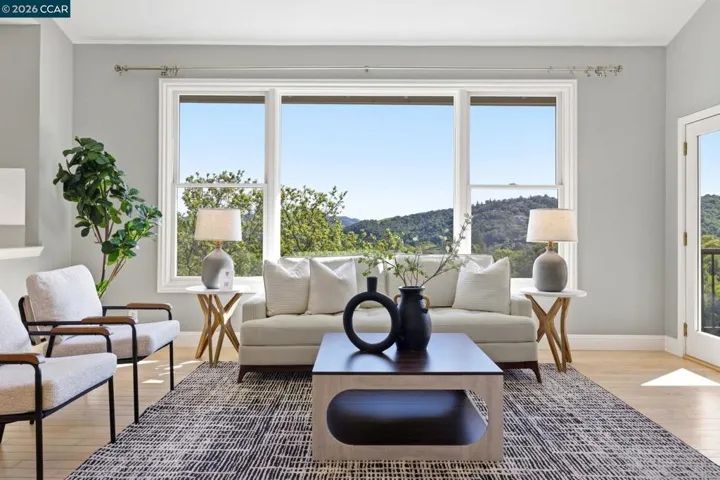 Tucked into one acre of peaceful hillside in coveted Lafayette, this rare two-home compound offers privacy and expansive views only minutes from elite schools, commute routes, and the vibrant downtown. The beautifully refreshed 2,654± sq ft main home includes 4 bedrooms and 3.5 baths with vaulted ceilings, hardwood floors, Andersen windows and doors, and fresh paint. Designed for both everyday living and elegant entertaining, the home offers two living spaces with a fireplace, built-in bar and four balconies for breathing in the stunning views. Downstairs there’s new carpeting and updated bathrooms, including a light-filled primary suite with a soaking tub. The architectural centerpiece is a 1,660± sq ft ADU with its own address and parking, believed to be designed by Leon Meyer. With walls of windows and oiled redwood, the 3 bed/ 2 bath retreat blends architectural character with modern updates including remodeled bathrooms, a built-in office, private patio, and an impressive primary closet. The grounds are designed for recreation with a Sport Court® for basketball / pickleball plus an entertaining area with BBQ, fountain, arbor, speakers, and EV charger. Near hiking trails and within the Acalanes School District, this remarkable property is where nature and creativity thrive.