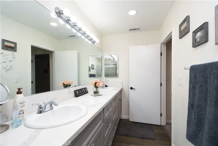 Welcome to 28300 Rawlings Road! This home is located on a great parcel with partial view of city lights at night. There is a approx. 800 sq ft workshop with electricity, concrete slab plus finished flooring & cable/ satellite connections. Property is fully fenced. There is farmers white fence with 2 separate entrances (bottom of property with swing gates/ front of property with power gate and remote. Lot is good size and offers additional parking for a RV. Full view of Big Bear Mountain and Idyllwild mountain ranges. Inside the home you have great open floorplan with solid surface flooring throughout the living spaces. The kitchen features white cabinets and granite counters with stainless appliances. Lovely family room with a floor to ceiling brick fireplace with a hearth to enjoy those cozy fire times. Family room is open to the kitchen area for a great room vibe. Backyard area is secluded and private. This home is a must see!