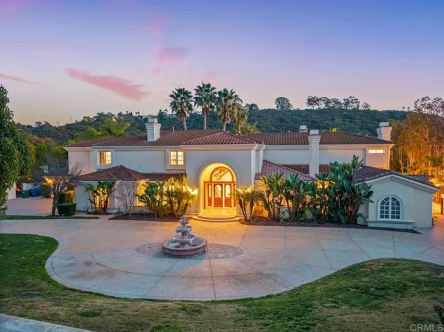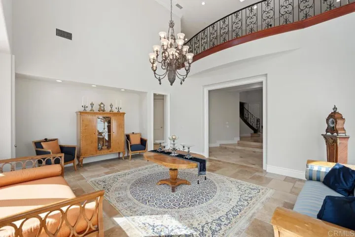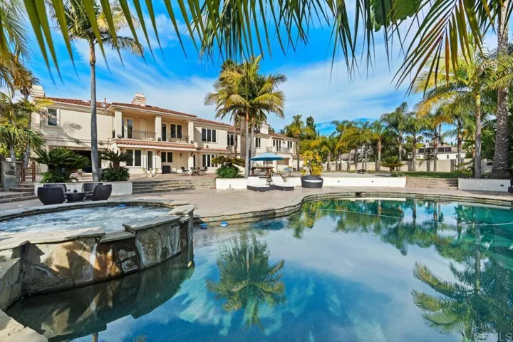 Located in the prestigious community of Rancho Santa Fe, this extraordinary estate offers refined luxury living with direct access to a serene lake and more than 20 acres of private parkland and scenic walking and hiking trails. A grand entry makes a striking first impression, showcasing soaring ceilings, elegant travertine floors, and dramatic dual staircases. Designed for both everyday living and grand-scale entertaining, the home offers multiple flexible living spaces, including two richly paneled offices or dens with custom built-ins—one discreetly hidden behind a secret entry and another with its own private access. The expansive family room flows seamlessly into a separate game room complete with a wet bar, creating an ideal setting for gatherings and entertaining. The private primary suite serves as a luxurious retreat, while thoughtfully designed bonus spaces include a dedicated kids’ lounge, an upstairs family room, and additional versatile areas well suited for a growing household. Throughout the home, exquisite wood-paneled walls and custom wood-beamed ceilings add warmth, sophistication, and architectural character. The chef’s kitchen is equipped with premium Viking appliances, dual dishwashers, a built-in desk, and a sun-filled breakfast nook. It opens directly to the family room and captures beautiful views of the surrounding grounds. All seven bedrooms are en suite, including five generously sized bedrooms upstairs with walk-in closets and two conveniently located on the main level. The primary suite offers a private sitting area with refrigerator and sink, dual fireplaces, and separate spa-inspired bathrooms—each with its own shower (one steam), one featuring a Kohler soaking tub, and two spacious walk-in closets. Additional highlights include six fireplaces, new carpeting and hardwood flooring, integrated sound and intercom systems, and a comprehensive security system with cameras. Outdoors, the estate truly shines. The grounds feature an expansive flat lawn, resort-style pool and spa, and a cabana with built-in BBQ and seating area—perfect for entertaining or relaxing under the Rancho Santa Fe sun. A private gate provides direct access to the adjacent parkland, offering an exceptional connection to nature right from your backyard. With ample space to comfortably accommodate a large household, the home also offers exceptional flexibility. One downstairs bedroom and bath was previously configured as a two-car garage and could easily be converted back, creating a potential five-car garage. The gated circular driveway provides parking for nine or more additional vehicles. This remarkable estate seamlessly blends luxury, privacy, and versatility in one of Southern California’s most coveted communities.