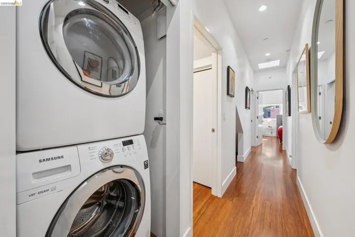 Designed by architect Peter Liang of Blue Truck Architects & completed in 2009. Striking custom home conceived for multi-gen living & harmony w/ its natural surroundings. Set in desirable Monclair Hills at the edge of Redwood Regional Park, the architecture responds to sun, slope & setting. A central courtyard connects 2 structures—a 3+BD main house w/ loft & a 2-story family room/primary suite—anchored by shared kitchen, dining & living spaces. Outdoor living unfolds across multiple retreats, including a rooftop lawn w/ seating & garden areas, an inner courtyard w/ built-in BBQ, & a front deck ideal for sunset views. Walls of glass frame treetop vistas w/ glimpses of Mt. Diablo & the Bay, creating a serene, treehouse-like retreat. The open kitchen, dining & living area flows outdoors via French doors & expansive windows. Kitchen features wood-front cabinetry, hidden storage wall, stainless counters w/ integrated sink, gas cooktop & integrated appliances. One wing offers 2BDs plus a den w/ powder room, closets & office w/ loft opening to the green roof. Opposite, a glass-lined family room leads to a floating stair & the primary suite w/ 2-story ceilings, tiled bath, loft & roof access. PLUS incredible / edible garden.
