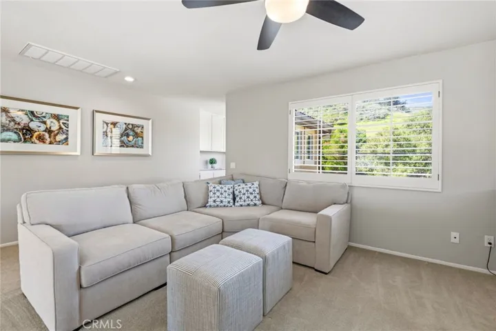 Step outside to the ideal-sized backyard designed for both relaxation & entertaining. Enjoy easy maintenance landscaping, vinyl fencing & a beautiful spool with a tranquil waterfall. The outdoor space also features a built-in BBQ with bar seating, ideal for enjoying Southern California living while watching a big screen TV.