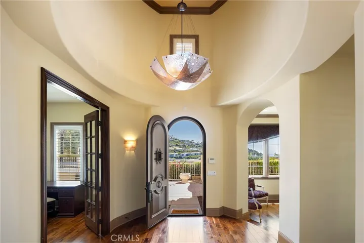 Newly built in 2007, this completely single-level 3,421 SF residence sits on an expansive 14,520 SF corner lot, offering a rare combination of scale, privacy, views, and elevated coastal living. Framed by significant ocean, harbor, island and hillside city-light views from both the front and rear, this peninsula lot is special with only one immediate neighbor. Upon arrival, a gated driveway leads to this impeccably designed Mediterranean home. Inside the formal entry welcomes you to grand spaces with high ceiling plates, coved features, and archways, and beautiful wood flooring drawing you into its captivating spaces including the formal living with direct ocean views. French doors and large-scale windows create a light-filled, open atmosphere framing the centered courtyard. Complete with an outdoor fireplace, this private outdoor space is designed for effortless, year-round entertaining at the heart of the home. The open-concept kitchen is designed for both everyday living and entertaining, complete with high-end stainless appliances, granite counters, a large island, walk-in pantry, breakfast nook, and perfect flow into the main living space. The kitchen and fire-warmed family room feature soaring vaulted ceilings with direct ocean views out toward the Catalina Island and the Dana Point Headlands. Several French doors lead to a massive wrap-around patio, very private and level. This residence offers four spacious bedrooms, each with its own ensuite bath, creating a true retreat for both residents and guests. The oversized primary suite is a sanctuary of its own, featuring a fireplace, vaulted ceilings, walk-in closet and shower, soaking tub, dual sinks, and direct access to the courtyard for a seamless indoor-outdoor experience. Additional highlights include statement lighting, crown molding, wired surround sound, custom tiling, dedicated dining and laundry rooms, several citrus trees, gated drive with major parking for oversized vehicles, 3-car garage, and a rare large-scale single-level floor plan. Ideally located in the hills just above historic downtown San Clemente, this home is walkable to Avenida del Mar’s boutique shopping and dining, the iconic San Clemente Pier, and the scenic 2.5-mile beach trail. World-class surfing, coastal trails, and Dana Point Harbor are all just minutes away—offering the ultimate Southern California lifestyle. Truly a rare opportunity at such a large-scale single-level home on a special ocean-view lot.
