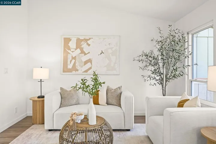 Welcome home to 523 Thistle Circle a Beautiful Townhome in the Heather Hills community of Martinez. Enjoy scenic rolling hills in this stylish updated end unit with no rear neighbors. Featuring 3 beds, 2.5 baths, and approximately 1,430 sq ft of living space with bright open floor plan with gracious living area with floor to ceiling windows and a comfortable dining area ready to entertaining. The inviting living room showcases vaulted ceilings, a cozy fireplace, and a newer balcony with great views! Recent updates include fresh interior paint, newer luxury vinyl plank flooring, new carpet floors downstairs, HVAC/ central heating and air, dual-pane windows, newer decks, and a detached two-car garage. The front patio is ideal for quiet mornings, weekend BBQs, or creating your own garden retreat. Conveniently located near parks, hiking trails, shopping, dining, and easy access to HWY 4/680/24, this home offers both comfort and accessibility. HOA amenities including a community clubhouse, pool, playground.