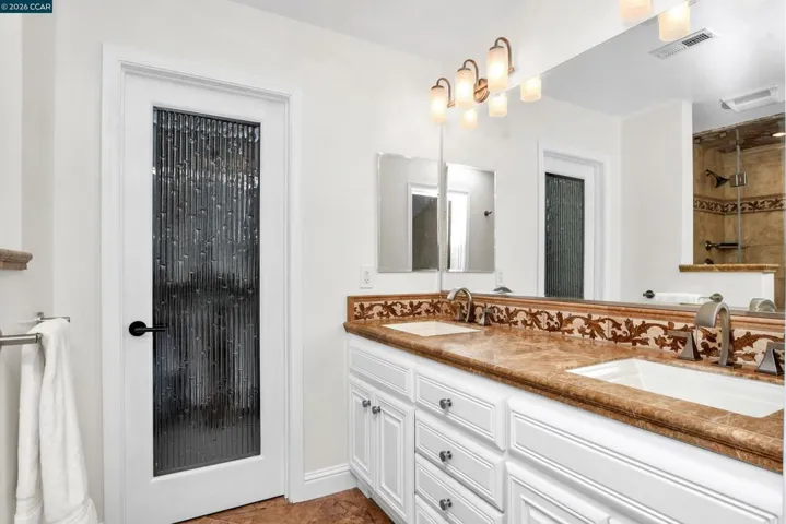 Behind the gates of Alamo Bridge’s Wild Oaks Village, this stunning 3BR/2.5BA townhome has been transformed by $350K in upgrades over the past 2.5 years — rebuilt from the inside out with no expense spared. The chef’s kitchen showcases a full Tier 1 Thermador suite (36″ refrigerator, 30″ pro gas range, 24″ dishwasher), Zephyr hood, custom black matte quartz counters, and white quartz backsplash. Every bathroom has been completely renovated. The primary suite features vaulted ceilings, Karastan carpet, and a spa-style bath with marble double vanity and oversized travertine shower. Anderson windows throughout. New dual-zone Bryant HVAC, all-new ductwork, new 200-amp panel, and a dedicated Level 2 EV charging circuit. The finished two-car garage with epoxy floors, custom cabinetry, slat wall system, and workbench is exceptional. Two private decks — one natural redwood, one with towering redwood views. New crown molding, LED lighting, hardwood floors, fireplace surround, and window coverings throughout. Heated community pool & spa. Steps to Iron Horse Trail, Rancho Romero Elementary, and downtown Alamo. Top-rated SRVUSD schools. Move-in perfect.