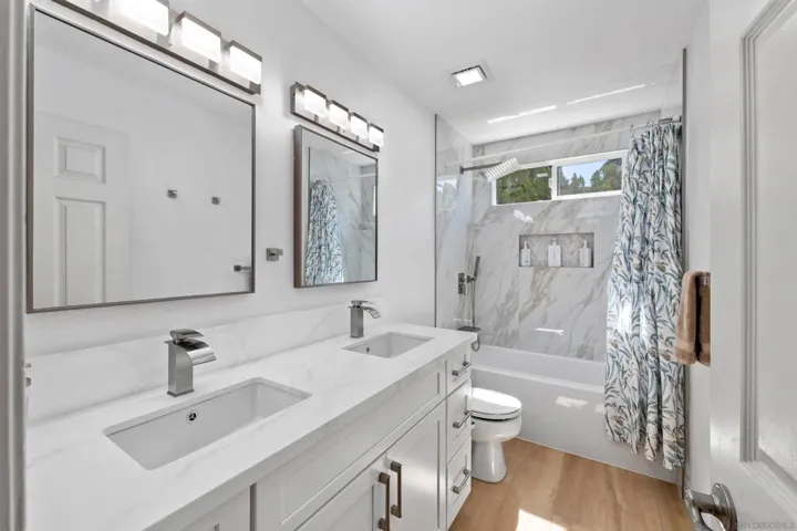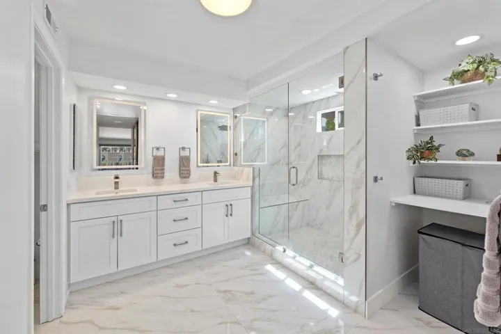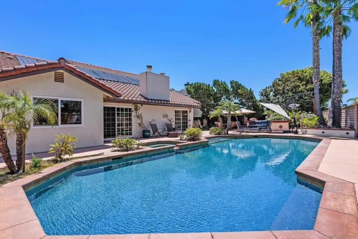 Hot off the press! All bathrooms completely remodeled with no expense spared & brand new carpet on stairs & in hall. Rare opportunity in The Heights! Located on a quiet cul-de-sac, this expanded and updated Plan 3 home sits on an all flat 10,638 SF lot. The Chef’s dream kitchen-remodeled in 2018-opens to the family room and was also expanded and extensively remodeled with the addition of an oversized island w/storage & wine cooler, stainless appliances, custom cabinetry, tech/study/work station or breakfast nook and raised ceiling. Multiple upgrades including windows, sliding door to yard, flooring, electrical, Carrier HVAC in 2023, Solar, Pool safety net & EV charger in 3 car garage. Primary suite with retreat & cozy fireplace is conveniently located on the entry level. Resort style yard is all useable with sparkling pool, 2 spas, built in BBQ, firepit, fruit trees, lush landscaping and raised organic beds. West Carmel Valley location with easy fwy access and walkability to Solana Highlands Elementary, El Paseo and Del Mar Heights center for shopping, restaurants, Cinepolis theaters, Skydeck and more! Low HOA fees and no Mello Roos. Minutes to Torrey Pines Reserve, hiking, Del Mar beaches/surfing and village. Public records do not reflect expanded square footage.