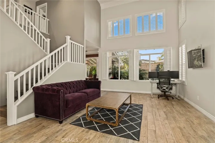 Experience the perfect blend of comfort and privacy in this exceptional four-bedroom, three-bath residence nestled in the heart of Simi Valley. From the moment you enter, sunlight streams through expansive windows, illuminating the airy, open-concept layout and creating a warm, welcoming ambiance. A charming brick walkway sets the tone, leading into an elegant living area adorned with plantation shutters, oversized windows, and a formal dining room ideal for memorable gatherings.