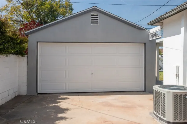 The inviting living room is filled with natural light and offers pleasant views of the tree-lined street. The kitchen features granite countertops and a cozy sitting area, creating a comfortable space for casual dining and everyday living. The spacious primary suite includes an en-suite bathroom with dual sinks, while two additional bedrooms provide flexibility for guests, a home office, or a hobby room. A generous den offers an ideal space for entertaining, highlighted by a sliding glass door that opens to the backyard, creating a seamless indoor-outdoor connection. A conveniently located laundry room sits just off the kitchen and den, adding everyday functionality. Original hardwood floors bring timeless character to the home, while additional features include central air and heating, an included washer and dryer, and upgraded windows installed approximately 10 years ago, complete with elegant shutters. Outside, a long driveway leads to a detached two-car garage. The spacious backyard offers plenty of room to relax or entertain, featuring a covered patio and an enclosed bonus room that’s perfect for year-round gatherings or additional outdoor living space.