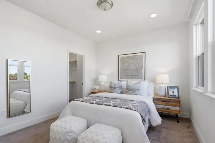 Built in 2018, this auspicious 2-bedroom, 2.5-bath townhome in the highly desirable Nova at The Vale offers modern design, functional comfort, and exceptional Silicon Valley accessibility. The bright open-concept main level features a sleek gourmet kitchen with quartz countertops, stainless steel appliances, and contemporary finishes. Dual primary suites provide ideal privacy and flexibility for guests, roommates, or work-from-home living. A private balcony adds inviting outdoor space, while the attached garage offers valuable additional storage space. Enjoy access to The Vales private park and clubhouse, with nearby Muwékma Park, Fair Oaks Park, Caltrain, and quick connections to Hwy 101, 237, Apple, Google, and other major tech campuses. Designed for todays connected lifestyle in one of Sunnyvales most sought-after communities.