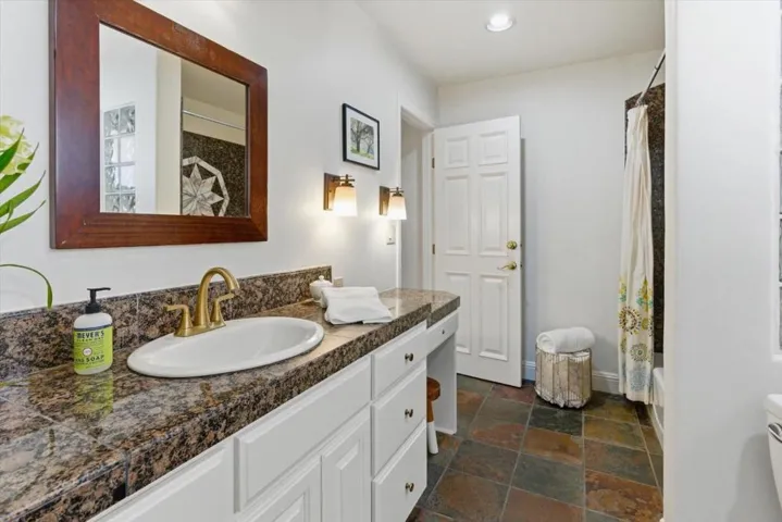 Exceptional Mediterranean Beauty. Attention to detail, design concept plus quality materials makes this a one-of-a kind home! Freshly painted interior, smooth finish walls, arched openings with bullnose corners. Abundant nat.light thru numerous dual paned & beveled glass windows + skylights. Well-appointed kitchen features gas range, stainless appliances, granite counters, appliance garages, pantry closet + inlaid slate floor. Rich Cherry, Birch & slate floors. Primary Suite complete w/high ceilings, granite surfaces @ dual sink vanity & jetted tub, sep. shower + laundry chute. Elegant open staircase. Ground floor offers 2 additional spacious bedrooms (Murphy bed included), full bath adjoining a bedroom & foyer with access to laundry/garage/yard. New glass patio door opens to covered porch/yard. Flagstone walkways lead to private oasis where you can relax or host your next party. Dine al fresco beneath the wisteria draped arbor & cafe lighting. Smart outdoor kitchen equipped w/gas BBQ + rotisserie, refrigerator, prep sink on granite counters + storage cabinets. Flowering plants, Meyers lemon, Bears lime, roses, bougainvillea, magnolia & birch trees on auto drip. Stamped concrete driveway, EV charger. Great Upper Westside: EZ access to UCSC, trails/beaches/surfing/dining + more!!!