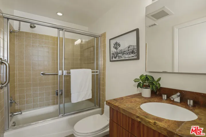 Perched in the coveted Highlands enclave of Pacific Palisades, this exquisitely updated townhome offers a refined blend of sophisticated design, modern comfort, and breathtaking canyon vistas.Sunlight pours through soaring ceilings and a dramatic skylight, illuminating the home’s open-concept living spaces. The living room centers around a warm fireplace and flows effortlessly to a serene patio with new tile flooringan inviting setting for morning coffee or sunset entertaining surrounded by a beautiful botanical paradise.The state-of-the-art chef’s kitchen is both striking and functional, featuring Brazilian granite countertops, rare Anegre African wood cabinetry, and premium appliances including a Viking six-burner range with griddle and KitchenAid built-in refrigerator. Custom pull-out cabinetry, a stylish wet bar, and tranquil mountain views from the kitchen complete this thoughtfully designed culinary space.Upstairs, a glass-railed staircase leads beneath a stunning skylight to the private bedroom level. The primary suite is a tranquil retreat with vaulted ceilings, a spacious cedar-lined walk-in closet, and a newly renovated spa-inspired bathroom appointed with Brizo fixtures, a Toto Washlet bidet, custom cabinetry, dual sinks, vanity table, LED backlit mirror, and a walk-in shower with dual shower heads. A private balcony captures sweeping canyon views.A secondary upstairs bedroom features its own en-suite bathroom, while an additional bedroom and full bath on the main level offer flexibility for guests, office space, or multigenerational living.Additional features include French limestone flooring, exotic hardwoods, central HVAC, designer lighting, a full-house water filtration system, new gas water heater, and a direct-access two-car garage with extensive custom storage.Residents enjoy resort-style amenities including a pool, spa, sauna, and fitness center overlooking the surrounding canyon landscape.Just moments from the boutiques, dining, and community atmosphere of Palisades Village, as well as nearby hiking trails and the beach, this home offers an exceptional blend of luxury, tranquility, and coastal lifestyle.
