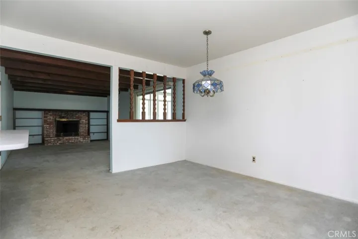 The living room enjoys farmland views from the side window, while the kitchen offers ample cabinetry and countertop space, along with a two-seat breakfast bar adjacent to the dining area. The family room features a fireplace, creating a comfortable gathering space.