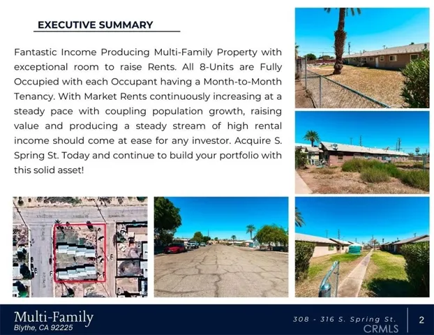 Fantastic Income Producing Multi-Family Property with exceptional room to raise Rents! All 8-Units are Fully Occupied with each Occupant having a Month-to-Month Tenancy. With Market Rents continuously increasing at a steady pace, raising value and producing a steady stream of high rental income should come at ease for any investor. Acquire S. Spring St. Today and continue to build your portfolio with this solid asset!
