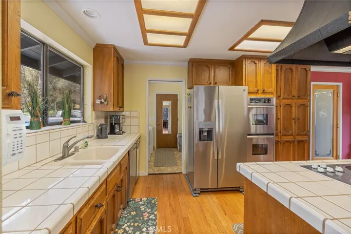 Beautiful 2002 +/- sq ft custom home, 3 bedroom/3 bath, just 3 miles from Bass Lake. Lots of custom detail with vaulted and beamed ceiling, brick hearth with wood burning fireplace. Step up to the kitchen with island and walk-in pantry. Double vanity in primary bath. 3 car attached garage plus large carport. Extra parking with paved driveway. New roof and new composite deck. Private well and septic. All this on 1.97 +/- acre lot. Mountain views with oaks, pines, manzanita trees and wildlife.