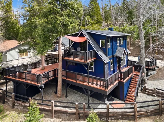 The Ultimate Modern-Rustic Retreat in Cedar Glen!! Experience the perfect harmony of vintage mountain charm and 21st-century luxury in this meticulously restored masterpiece. Originally erected in 1938, this home has undergone a massive, complete transformation that leaves no stone unturned. Situated on a premier corner lot bathed in natural light, the property features a rare mountain luxury: abundant street-level parking and a brand-new oversized carport. Step inside to a seamless interior featuring upgraded luxury vinyl flooring, stunning pine board ceilings, and synergistic wainscoting. The chef’s kitchen is a true showstopper, boasting custom cabinetry, sleek quartz countertops, a farmhouse copper sink, and a beautiful kitchen island. The main level flows into a spa-like bathroom complete with a two-person steam shower and electric heated floors, while the upstairs primary suite offers a new cedar walk-in closet and an oversized Juliet balcony with scenic views of Lake Arrowhead. Unique to this property is the intentional “Guest Stateroom” buildout, featuring a private half-bath with a barn door and a new kitchenette—the ideal setup for a private guest escape or high-end rental. Peace of mind comes standard with “over-built” infrastructure rarely found in the San Bernardino mountains. This retreat is prepared for every season with fireproof Rockwool insulation, shear walls, a radiant barrier foil, and a new 200 Amp service panel equipped with a Kohler generator and automatic transfer switch. High-capacity climate control is provided by a 36k multi-zone heat pump and a tankless water heater. The exterior is equally impressive, featuring a brand-new roof, energy-efficient vinyl windows, and a massive 900-square-foot wrap-around deck designed for entertaining against a backdrop of lake views. Every inch of the lot is thoughtfully curated with railroad tie fencing and terracing, offering a “new house” quality that is truly impossible to replicate.