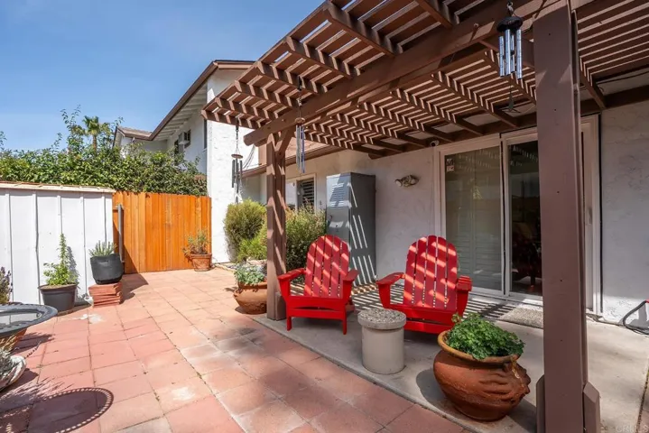 Rarely available single-story, ground-level cottage-style condo in the highly desirable San Carlos neighborhood—with NO neighbors above! Tucked away in a quiet and secluded setting, this 2-bedroom home offers the perfect blend of comfort, privacy, and convenience. Step inside to find thoughtful upgrades throughout, including smooth ceilings (popcorn removed), attic fan, wide baseboards, dual-pane vinyl windows, and slider, updated interior doors, and a beautifully upgraded front door with beveled glass that fills the home with natural light. Additional features include an attic fan for improved energy efficiency, mirrored closet doors, and elegant Norman (plantation) shutters throughout. The spacious and private backyard is a true standout—approximately twice the width of many similar units and fully usable with its flat layout. Enjoy outdoor living under the pergola, plus the convenience of a storage shed and extended concrete walkway leading to the rear gate. Ideally situated in a peaceful interior location within the community, this home is surrounded by lush HOA-maintained greenbelt space and is just minutes from Mission Trails Regional Park, Cowles Mountain, local schools, shopping, and dining. Opportunities like this are rare—don’t miss your chance to own this charming and well-maintained home in one of San Diego’s most sought-after areas!