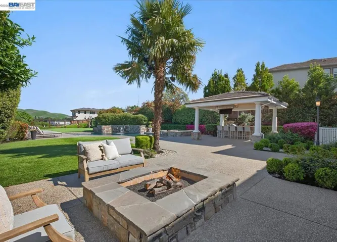 Resort-style luxury living in the heart of Danville in one of the area’s most coveted neighborhoods, showcasing breathtaking panoramic views of Mt. Diablo! This exceptional 6-bedroom, 6.5-bath estate has been fully remodeled with elevated, high-end finishes and custom design details throughout. You are welcomed by grand vaulted arches, custom millwork, and French Oak hardwood floors that set the tone for refined elegance. Formal living and dining spaces exude sophistication, while expansive windows frame unforgettable sunset vistas from the upper level and beyond. At the heart of the home, a stunning chef’s kitchen impresses with dramatic marble slab surfaces, top-tier appliances, and exquisite custom lighting. A private one-bedroom casita with its own entrance, kitchenette, and full bath perfect for guests or extended family. The primary suite is a true sanctuary, complete with a serene sitting area and a lavish, spa-inspired bath adorned in striking marble, dual vanities, a soaking tub, and generous walk-in closets. Step outside to a spectacular backyard retreat designed for ultimate luxury living with a sparkling pool with waterfall and raised spa, putting green with new turf, firepit for intimate gatherings, and an elegant pavilion with bar seating and an additional firepit.