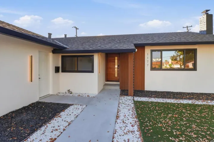 Fully remodeled with permits, this stunning modern home sits on a huge corner lot with easy access to major highways. Welcome to 1177 Whitehall Ave, San Jose, featuring a bright open-concept layout, smooth wall finish throughout, wide-plank flooring, and curated modern details. The designer kitchen includes Porcelanosa tile finishes, brand-new Samsung Bespoke refrigerator and dishwasher, GE Café built-in microwave, custom cabinetry, and quartz countertops with a spacious island. The living area offers a custom electric LED fireplace, accent wood walls, and a Porcelanosa-finished display shelf. Upgrades include custom bedside lighting, LED hallway accents, and a Google Nest HVAC controller. Bathrooms feature double vanities, suspended sinks, a frameless walk-in shower, and a tub/shower combo. The walk-in master closet includes custom LED lighting. Includes a Miele washer/dryer combo built into a bathroom closet. Additional highlights: 1-year-old roof, finished garage with EV-ready capability, spacious yard, and modern designer finishes throughout. Turnkey and move-in ready, offering a perfect blend of luxury, function, and Silicon Valley convenience.