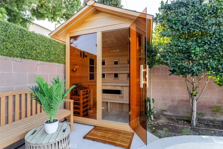 The outdoor space is a true private oasis, complete with a sparkling pool and spa, ideal for relaxing or hosting gatherings. Lush surroundings and a serene setting create a resort-style experience right at home. Additional highlights include a detached two-car garage, energy-efficient solar panels, and an elegant circular driveway providing convenient drive-in and drive-out access while enhancing the home’s impressive curb appeal.