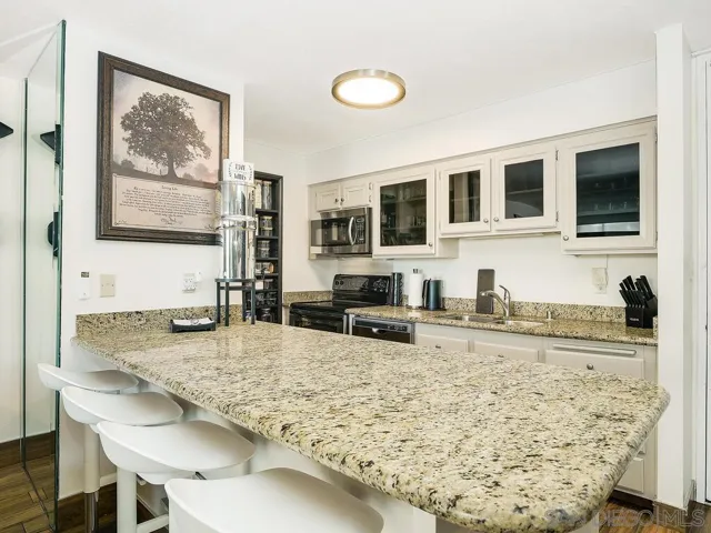 Residence 403 at the Coronado Shores represents one of the most compelling one-bedroom opportunities currently available—just steps from the beach. The residence features new flooring, an in-unit washer and dryer, and a comfortable coastal palette that creates a relaxed, livable atmosphere. The well-designed floor plan lives larger than expected, offering flexibility for full-time living or a beachside retreat. A rare highlight is the combination of tandem parking and an exceptionally large custom private storage room—one of the most substantial at the Shores providing uncommon flexibility for bikes, boards, golf clubs, and beach gear. With a prime location and standout parking and storage, this residence offers strong value within the Shores today. Located within the gated Coronado Shores community, residents enjoy four oceanfront pools, tennis and pickleball courts, a fitness center, and the private Beach Club—all just moments from the sand.