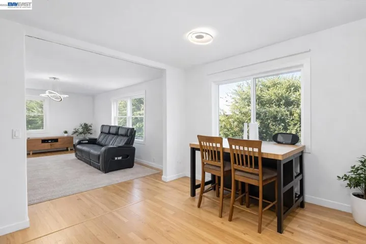 Tucked into the Hayward Hills, this tri-level home offers a rare sense of privacy in a peaceful, tree-lined setting, while still being just minutes from BART, Cal State East Bay, parks, trails, shopping, and commuter routes. Featuring 3 bedrooms, 2 bathrooms, bay views, and a flexible multi-level layout, the home is filled with warmth and character. Inside, you’ll find hardwood flooring, double-pane windows, an updated kitchen with stainless steel appliances, and practical upgrades including an energy-efficient furnace, tankless water heater, stacked washer and dryer, solar, and an EV charger. The finished lower level adds valuable versatility for guests, a home office, or extended living, while attic space offers additional storage and future possibilities. Outside, the property is framed by mature landscaping and mature fruit-bearing trees, creating a serene hillside setting with room to enjoy. The flexible layout and lot offer intriguing possibilities for multigenerational living or potential future ADU/JADU opportunities