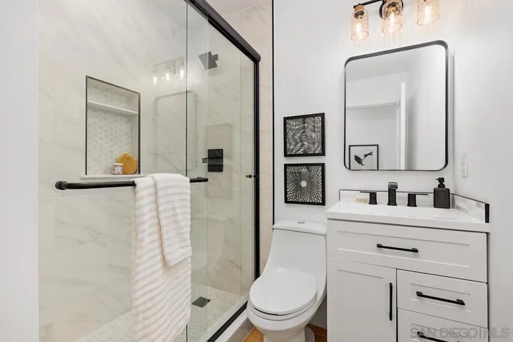 Welcome to a Cardiff by the Sea ocean view home where luxury meets coastal living. This completely upgraded four-bedroom residence plus ADU offers nearly 2,000 of combined square feet of thoughtfully designed living space, crafted with elevated finishes and attention to every detail. From the moment you step inside, you are greeted by soaring vaulted ceilings, expansive natural light, and an open-concept layout that creates both comfort and sophistication. At the heart of the home is a stunning designer kitchen featuring rich walnut cabinetry, entertainers island, high-end finishes, and a seamless flow perfect for entertaining or everyday living. Wood-grain tile flooring runs throughout, offering the warmth of hardwood with modern durability, complemented by upgraded lighting that enhances every space. With four spacious bedrooms and 2 primary suites, this home provides flexibility for families, guests, or a dedicated office. The primary suite serves as a private retreat, blending comfort, style, and functionality. The second primary suite is perfect for visitors and access to those ocean views. Adding even more value, the property includes an ADU ideal for extended family, guests, or potential rental income. The true highlight is the breathtaking ocean views that elevate everyday living into something extraordinary. This is more than just a home, it is a lifestyle upgrade, offering a turnkey coastal opportunity with high-end finishes, versatile living, and unforgettable sunset views.